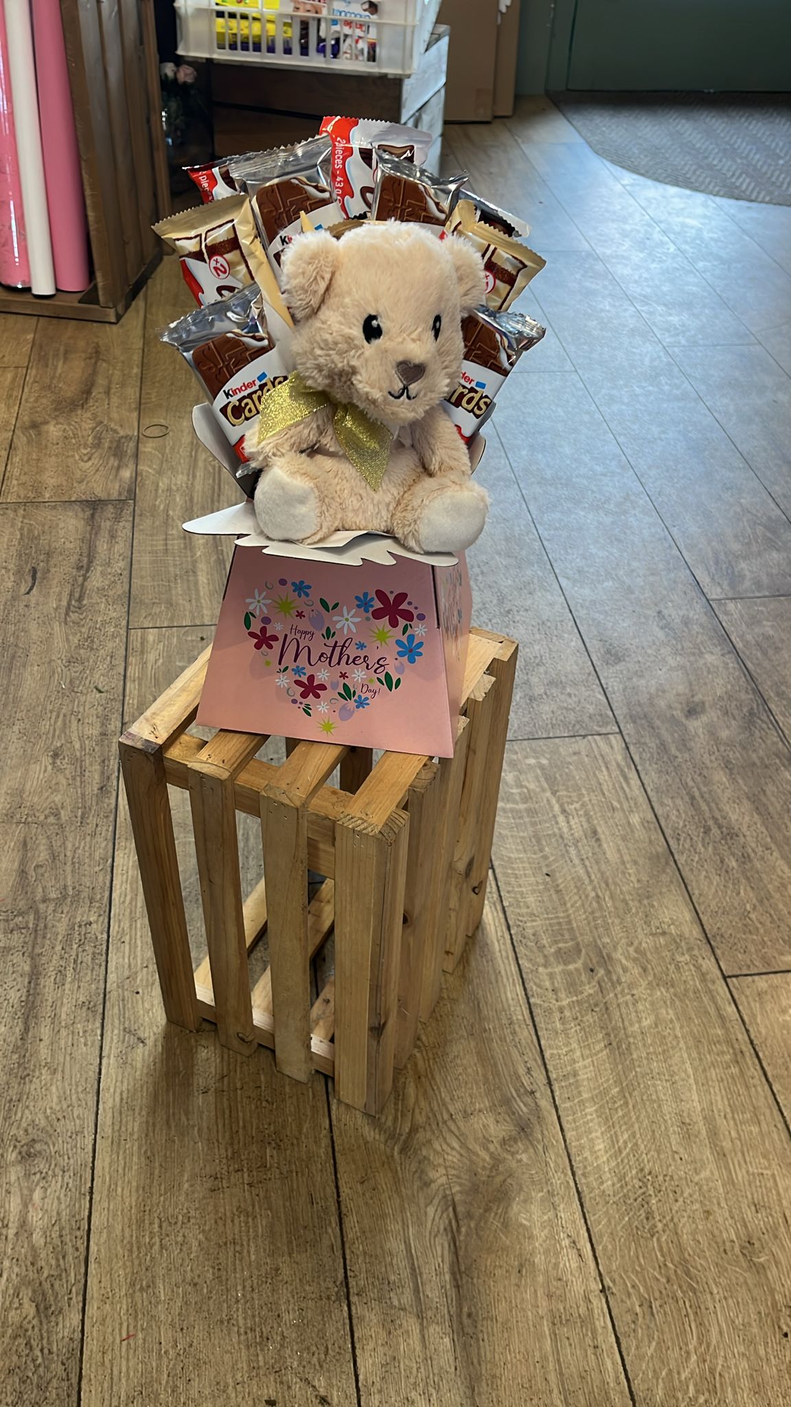 A delightful Mother’s Day gift box featuring an adorable teddy and a selection of Kinder chocolates. A sweet and thoughtful way to show appreciation and love for Mum on her special day.
